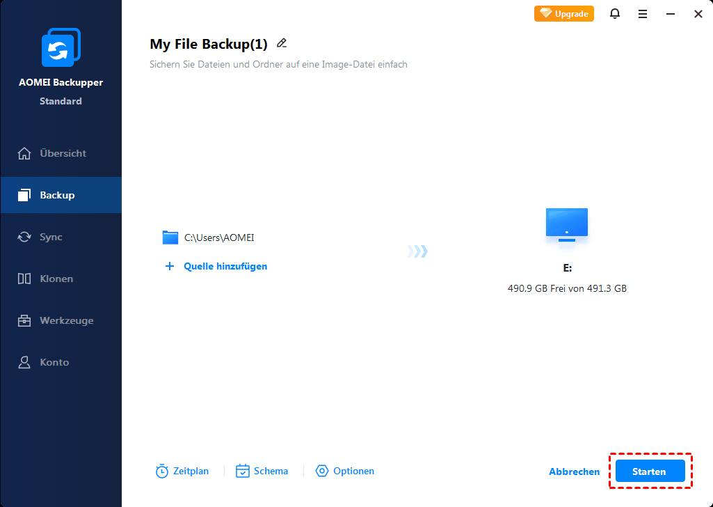 Schritt 4. Klicken Sie auf „Starten“, um Dateien in Windows 7 einfach zu sichern.