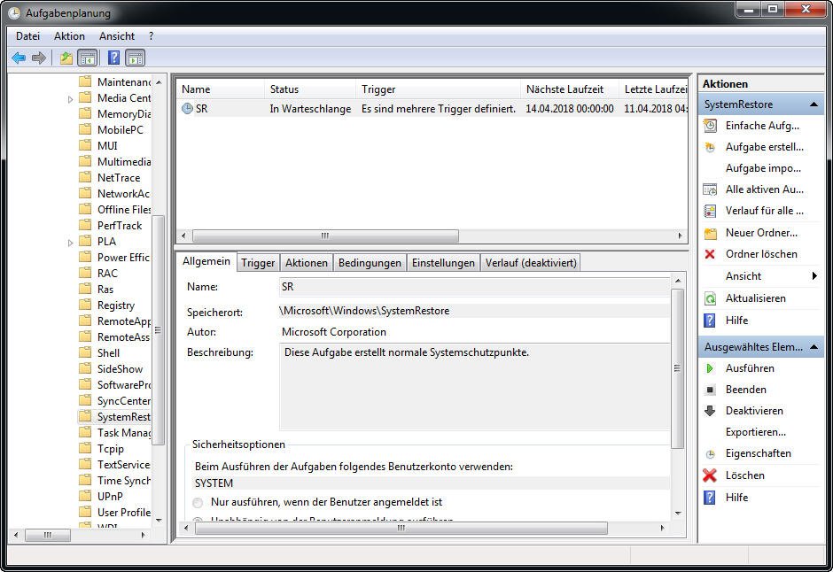 SR-Dateien in der Aufgabeplanung ist einer der Gründe, die zu keinen Systemwiederherstellungspunkten führen. Um das Problem zu lösen, müssen Sie Trigger in SR-Eigenschaften ändern.