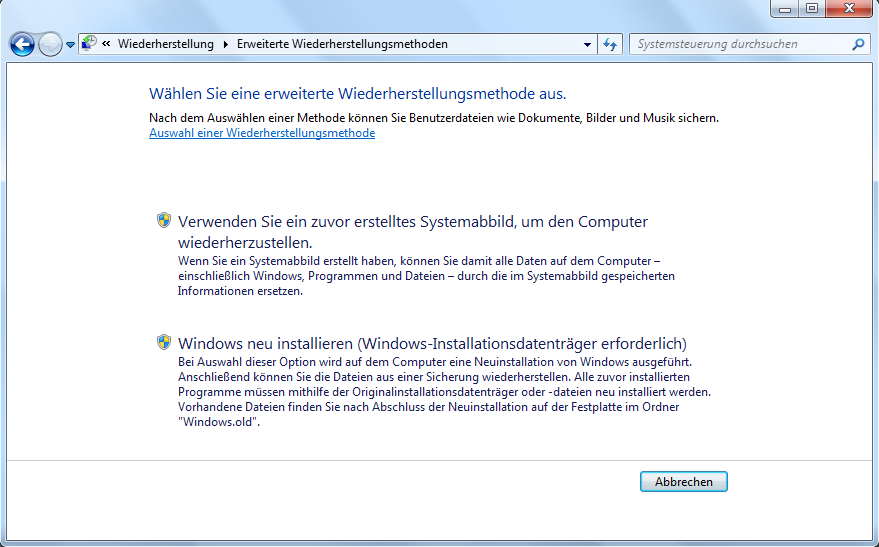 ● Diese Methode ist nur anwendbar, wenn Sie zuvor ein Systemabbild erstellt haben.