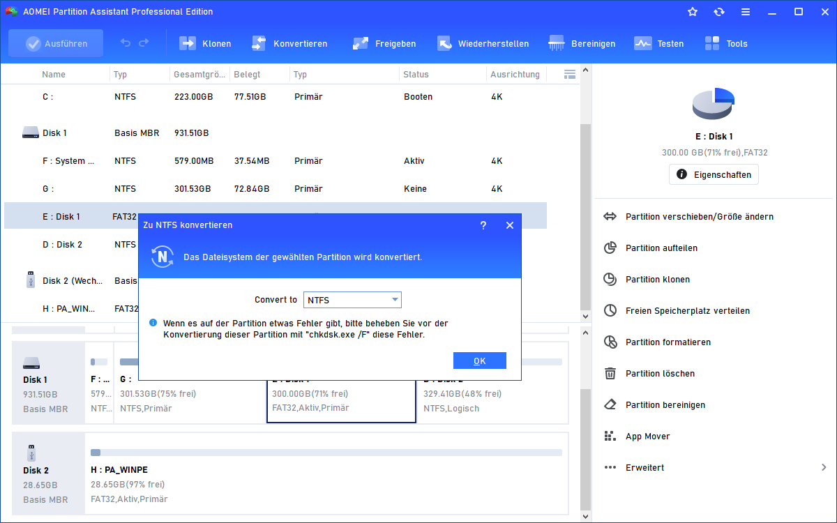 Danach werden Sie gefragt, ob Sie sie in NTFS konvertieren möchten. Klicken Sie auf OK, um dies zu bestätigen.