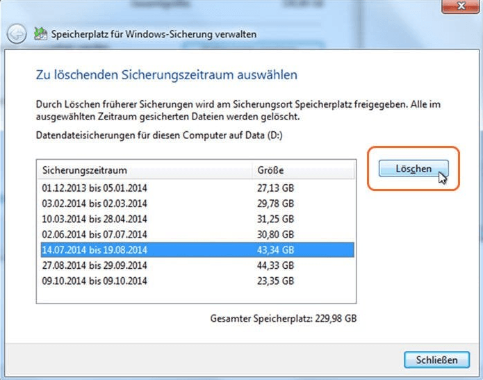 Um alte Windows 7-Sicherungsimage zu löschen, öffnen Sie bitte zuerst die Windows-Sicherung und befolgen Sie die Schritte zum Löschen: