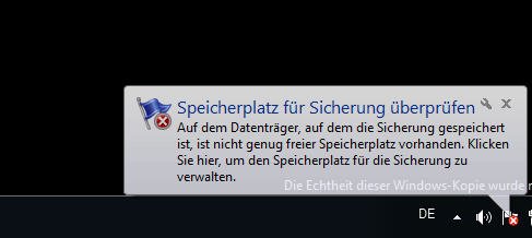 Wenn Sie auf die Benachrichtigung zum Speicherplatz für Sicherung überprüfenklicken, gelangen Sie zum Fenster „Speicherplatz für Windows 7-Sicherung verwalten".