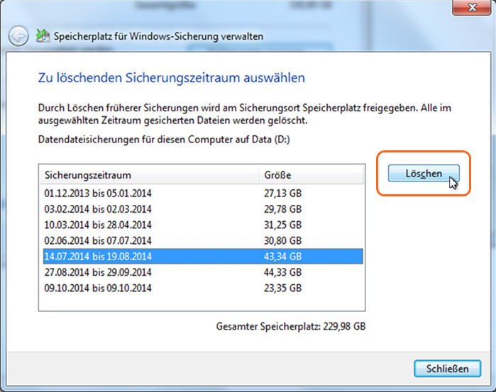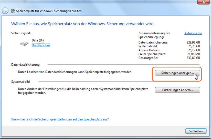 Erfahren Sie, wie man Windows 7 Speicherplatz für Windows Sicherung verwalten kann, wenn der Speicherplatz für Sicherung voll ist.