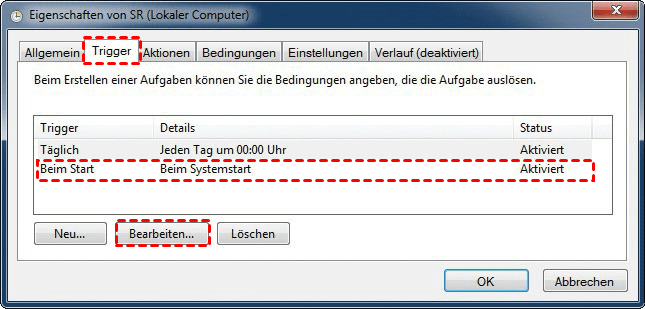 4. Auf der Registerkarte Trigger können Sie auf Neu klicken, um beim Start einen neuen Trigger hinzuzufügen. Oder Sie können auf Bearbeiten klicken, um den Trigger zu ändern.