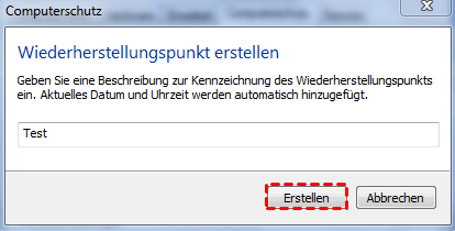 Wie kann man mit dem integrierten Tool in Windows 7 Wiederherstellungspunkt erstellen?