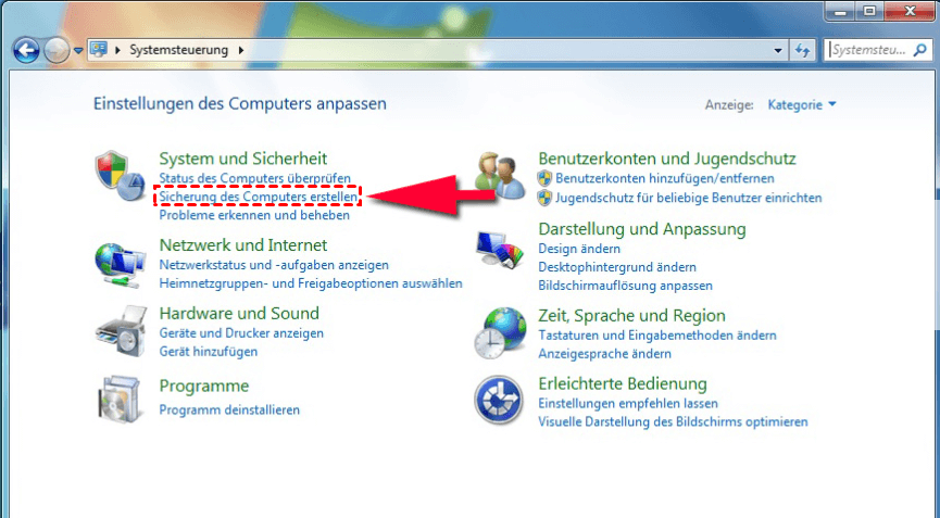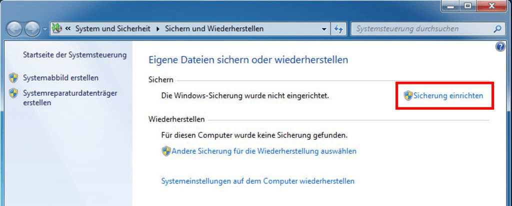 1. Öffnen Sie Windows „Sichern und Wiederherstellen“ erst. Sie können es unter „Sicherung des Computers erstellen“ in der „Systemsteuerung“ finden.