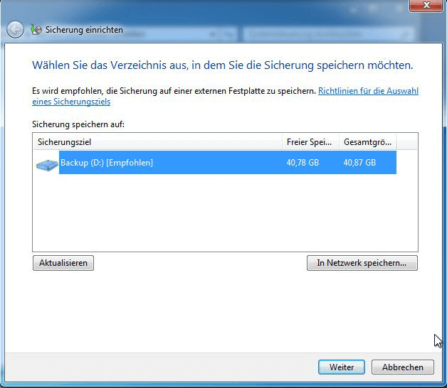 Mit Sichern und Wiederherstellen in Windows 7/10 und der Systemabbildsicherung in Windows 8 / 8.1 können Sie eine geplante Sicherung mit ein inkrementellem Backup durchführen. Sie können die folgenden Schritte ausführen, um eine inkrementelle Sicherung in Windows 7 zu konfigurieren: