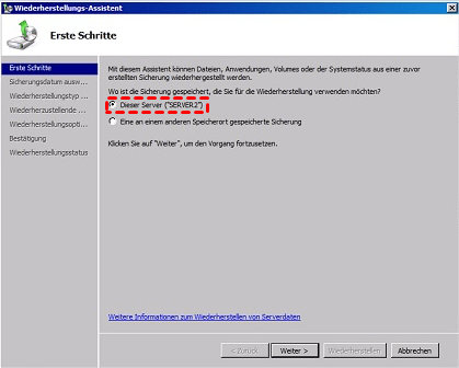 Schritt 2. Wählen Sie auf dem Bildschirm Erste Schritte die Option Dieser Server, um eine lokale Sicherung für die Wiederherstellung zu verwenden.