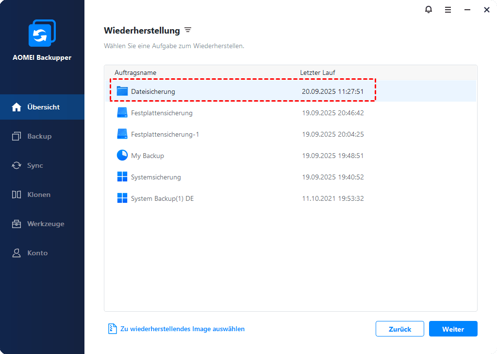 4. Wählen Sie Sicherungsdatum, das vor der Datenverlust ist.