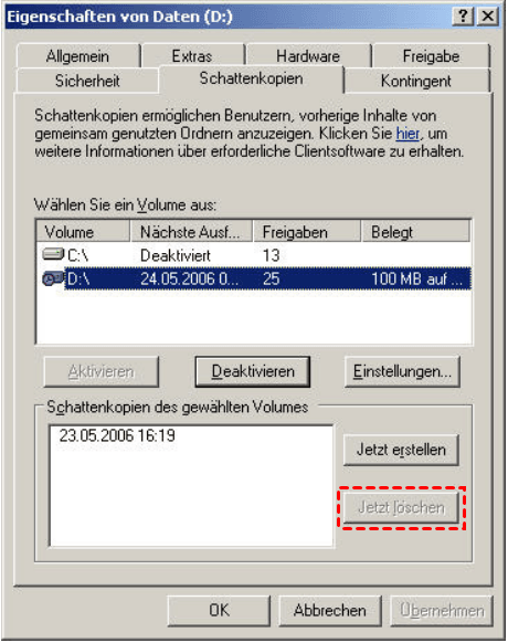 Schritt 2. Sie können nutzlose Versionen von Schattenkopien auswählen, indem Sie auf die Schaltfläche Jetzt löschen tippen.