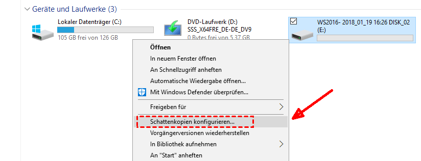 Methode 2. Server 2012 R2 Schattenkopien entfernen über Systemeigenschaften