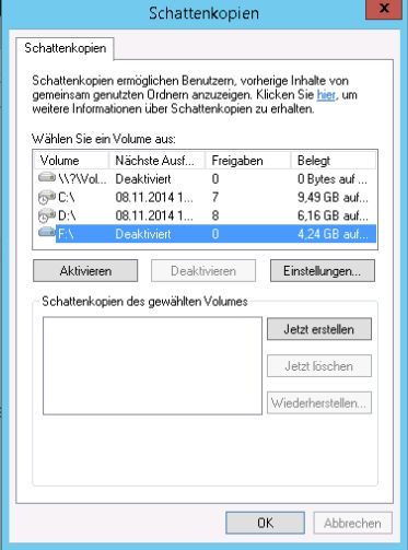 Wie kann man in Server 2012 R2 Volumenschattenkopien löschen?