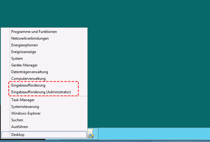 Schritt 1. Klicken Sie mit der rechten Maustaste auf das Start-Symbol und wählen Sie Eingabeaufforderung (Admin).