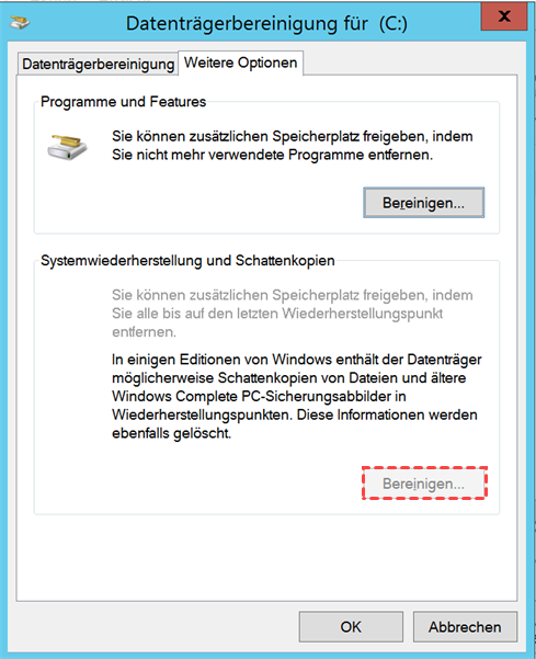 Methode 3. Windows Server 2012 R2 Schattenkopien löschen über die Datenträgerbereinigung