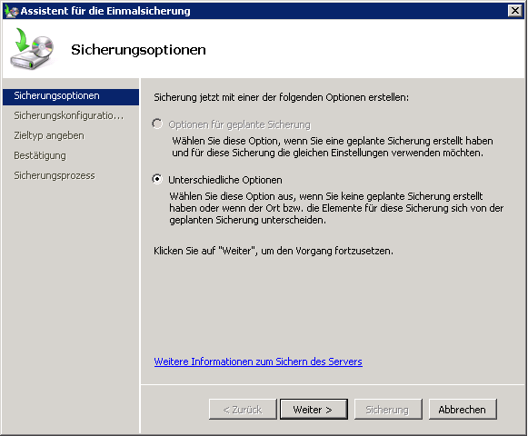 ◉ Systemstatussicherung erstellen mit der Windows Server-Sicherung