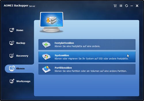 So zeigen Ihnen die folgenden Hinweise, wie Sie Windows Server 2012 auf eine neue Festplatte mit AOMEI Backupper Server klonen können.