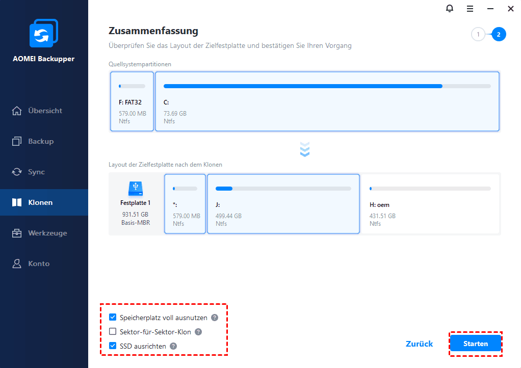 Schritt 3. Klicken Sie auf „Starten“, um zu bestätigen.