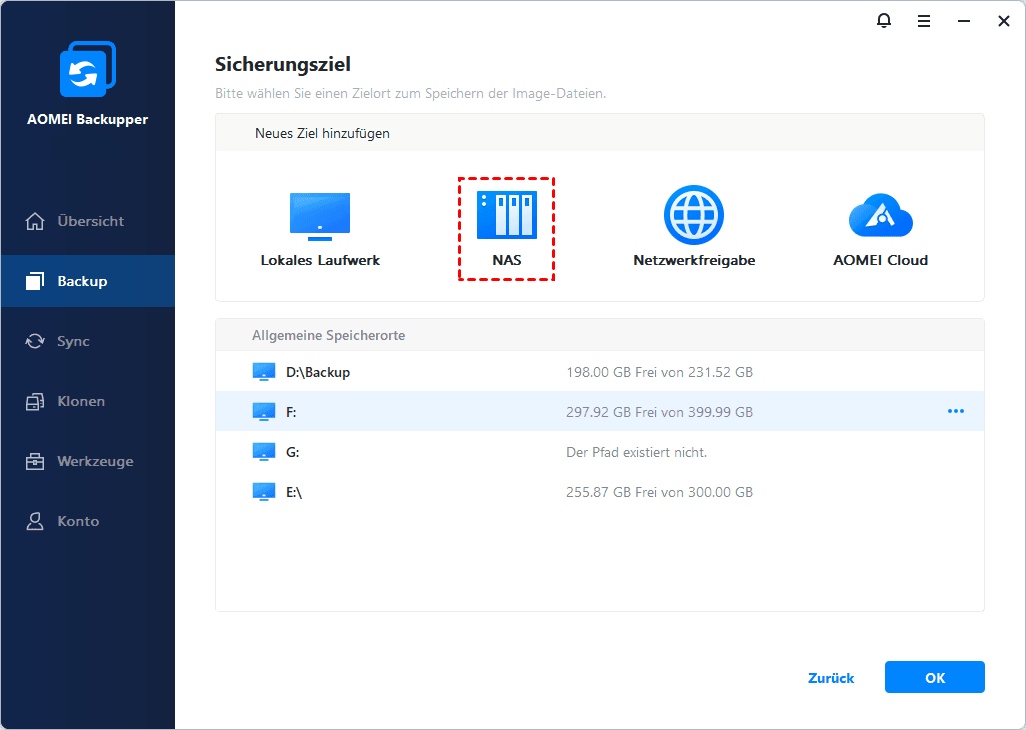 Möchten Sie Windows Server 2019 auf NAS sichern, z. B. Synology oder QNAP? AOMEI Backupper Server könnte mit seiner hohen Kompatibilität und seinen umfassenden Funktionen eine bessere Option als Windows Server Backup sein. Egal ob Sie eine Sicherung von Windows Server 2019 oder Windows Server 2016 auf NAS/Netzwerkfreigabe, Cloud-Laufwerk oder umgekehrt durchführen möchten, kann der Vorgang mit wenigen Klicks abgeschlossen werden, sehr einfach und schnell.