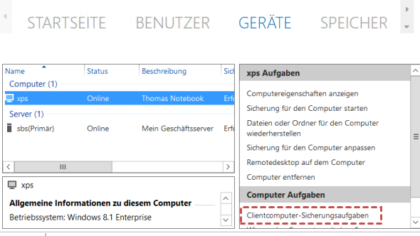 Schritt 2. Klicken Sie auf für Clientcomputer-Sicherungsaufgaben im Abschnitt Computer Aufgaben.