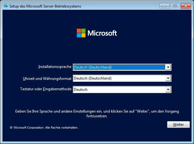 Schritt 1. Legen Sie den Windows Server-Installationsdatenträger oder den Wiederherstellungsdatenträger ein, um den Zielcomputer zu starten. Wählen Sie die Sprache und andere Einstellungen und klicken Sie dann auf Weiter.