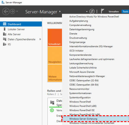 Bare-Metal-Backup und -Restore von Windows Server mit integriertem Tool