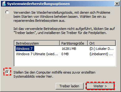 Schritt 4. Wählen Sie Stellen Sie den Computer mithilfe eines zuvor erstellten Systemabbilds wieder her und klicken Sie auf Weiter.