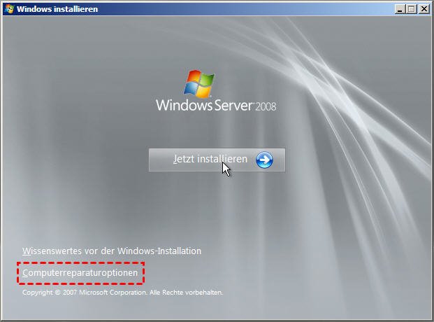 Schritt 1. Legen Sie die Windows Server Installations-CD in Ihren neuen Server ein und starten Sie ihn von dort aus. Wählen Sie die Sprache und die Tastatur aus und klicken Sie auf „Weiter“.