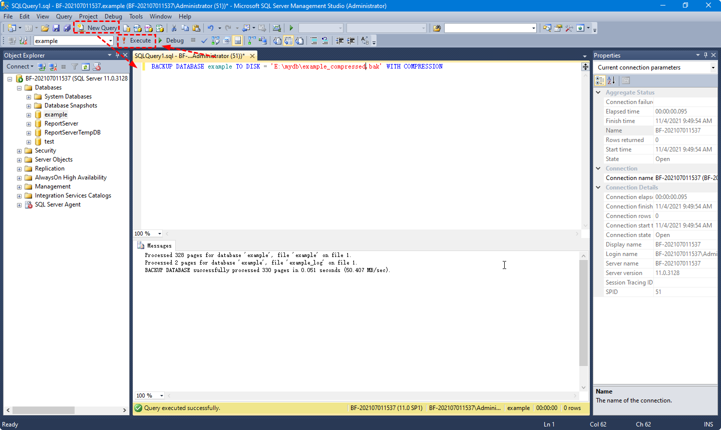 Then you can create backups of SQL databases in normal ways, and they will all be compressed. If you don’t want to compress the backups anymore, just uncheck Compress backup option in Properties.