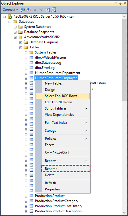 1. In SQL Server Management Studio, select Object Explorer by pressing on F8 or selecting View on the top menu.