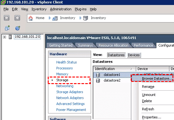 1. Navigate to vSphere Client, select Menu >> Storage. Then right-click the datastore select Browse Datastore