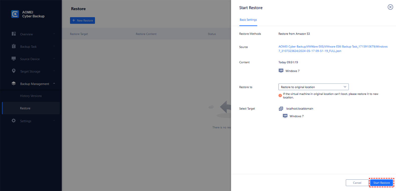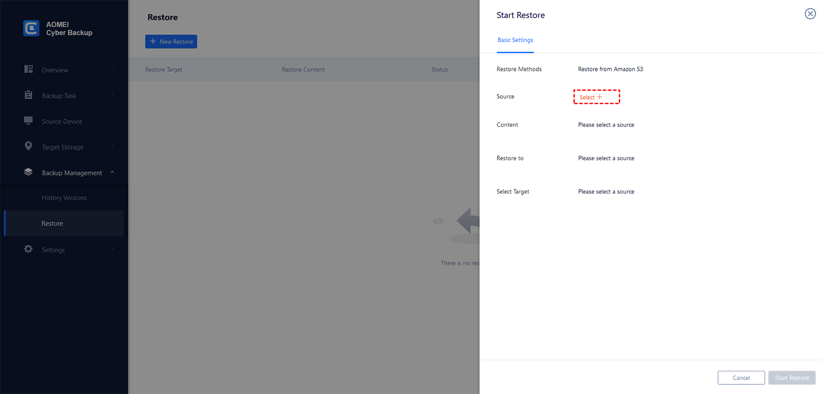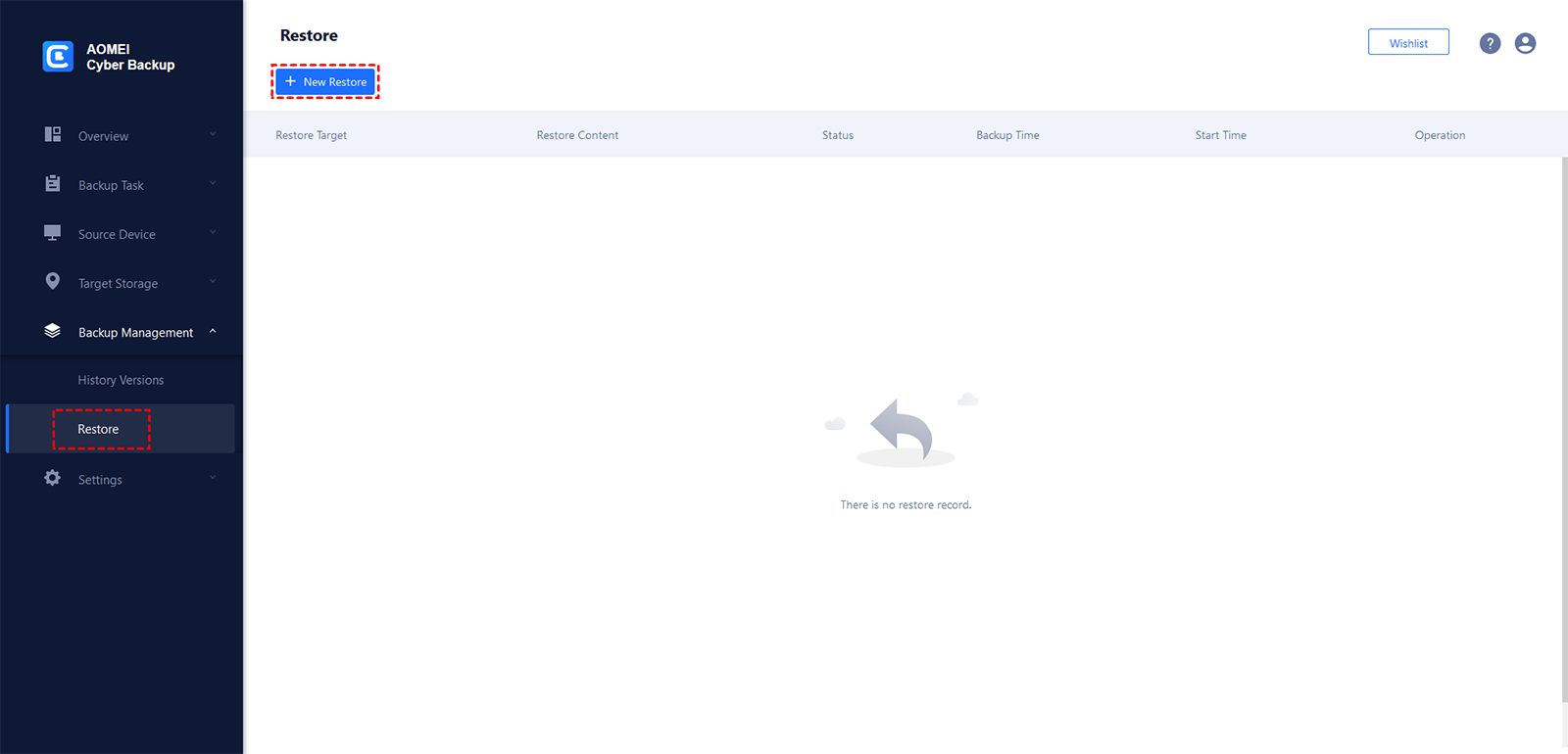 1. Click "Backup Management"-->"Restore" to open the restore page.