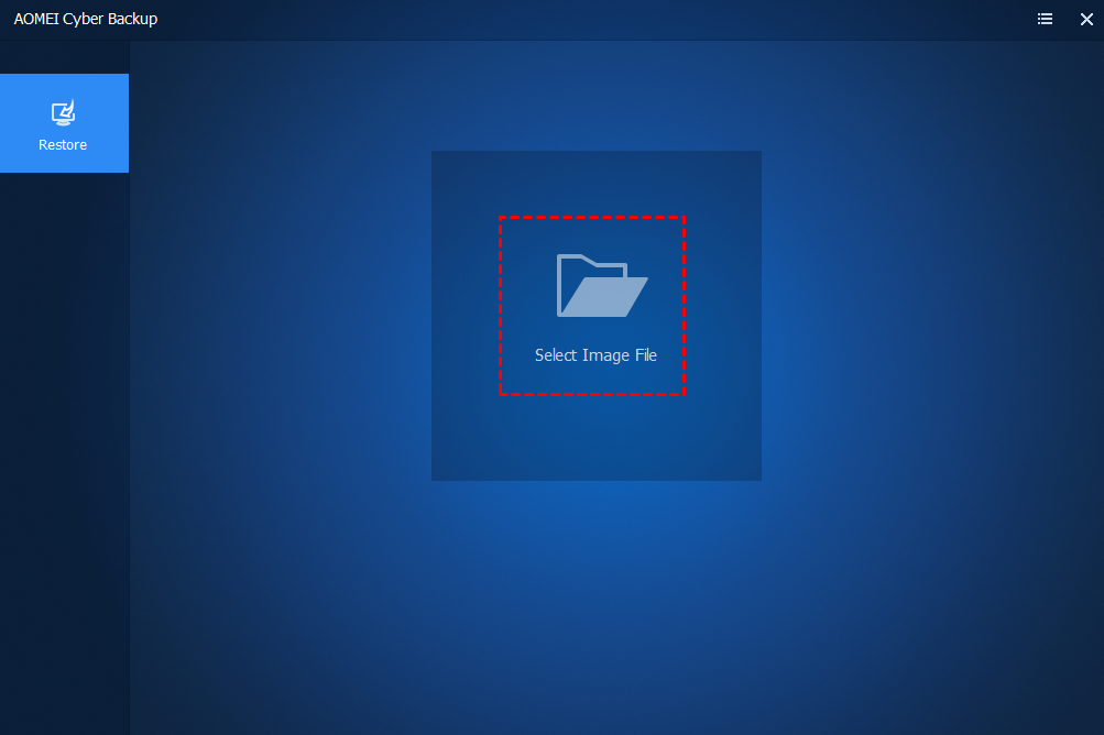 6. Reboot your agent computer and enter into BIOS and set the computer to boot from USB/CD/DVD. You will then see this AOMEI Cyber Backup with Restore interface. Click "Select Image File" and then select the system/disk backup image to continue the restore operation.