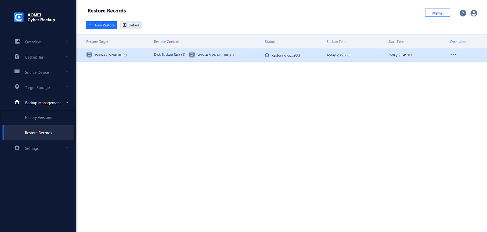 You may need to restore your physical machines in many cases, for example, system crash, system corruption, data loss, and so on. With the help of AOMEI Cyber Backup, you can easily restore the Windows devices you backup. It will recover your data and save your time.