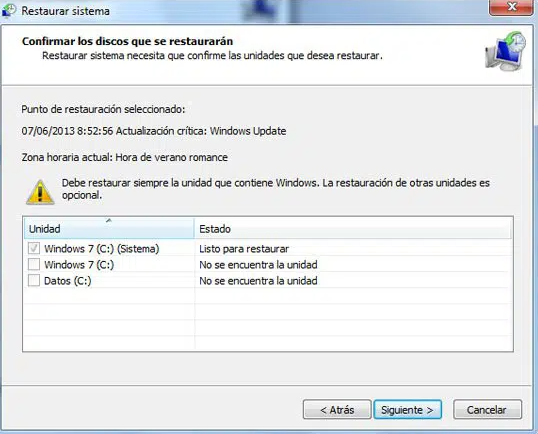 La unidad con Windows instalado activará automáticamente la Protección del sistema. Pero puede desactivarse manualmente o mediante otras aplicaciones. La protección del sistema sólo puede activarse en unidades formateadas con el sistema de archivos NTFS.