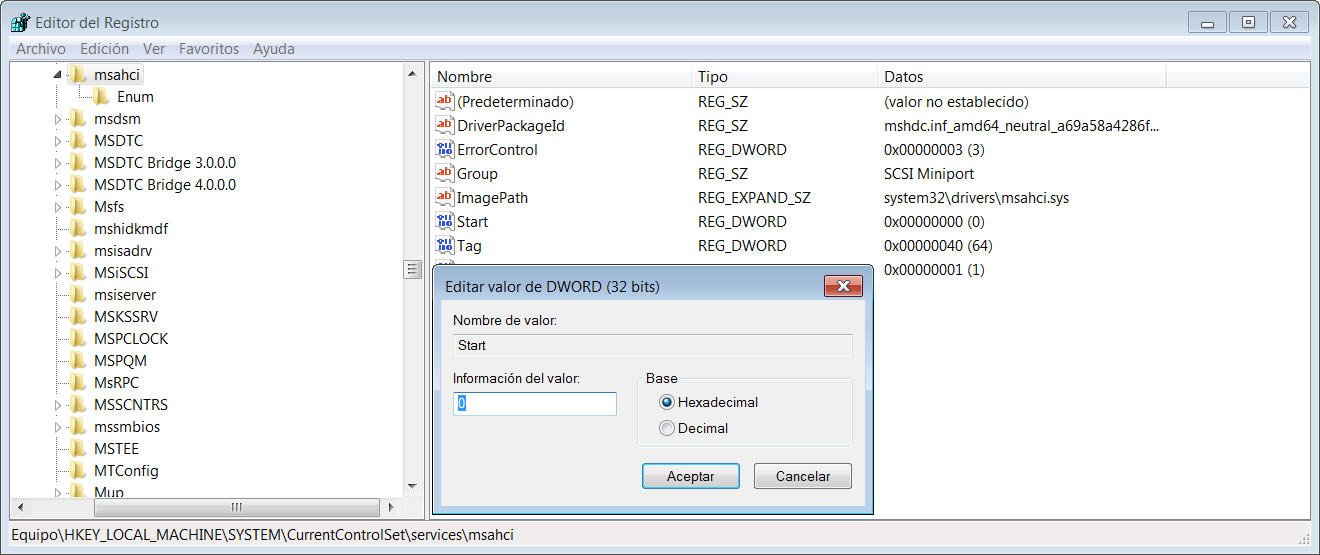 HKEY_LOCAL_MACHINE\SYSTEM\CurrentControlSet\services\msahci