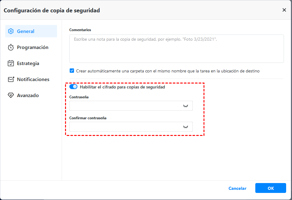 Cifrado de copia de seguridad