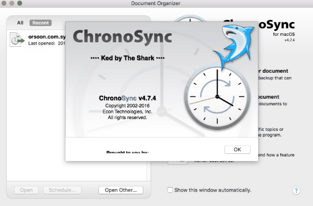 Como se indica en su sitio web oficial, ChronoSync es una solución completa y todo en uno para sincronización de archivos, copias de seguridad, copias de seguridad de arranque y almacenamiento en la nube. Es una de las herramientas de copia de seguridad y sincronización más conocida entre los usuarios de Mac. El ChronoSync v4.9.8 ha sido lanzado por Econ Technology en la actualidad, que agrega más características mejoradas.
