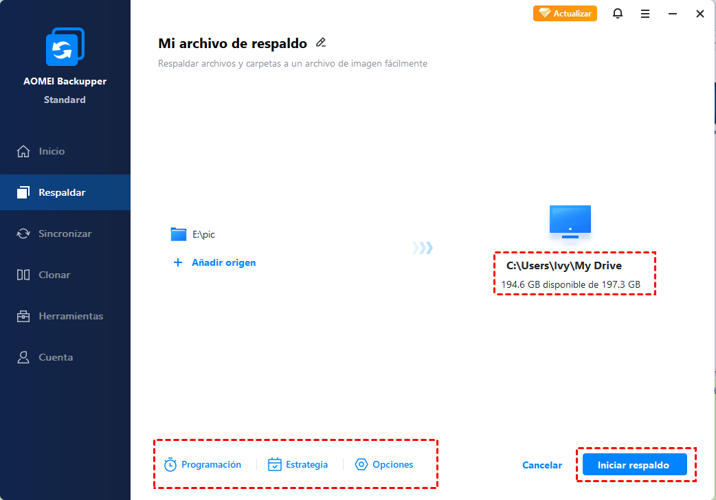 Además de Google Drive para ordenadores de sobremesa, puedes probar el mejor software de copia de seguridad automática de archivos: AOMEI Backupper Standard. Le permite hacer copias de seguridad de archivos en Google Drive automáticamente en Windows 11/10/8/7/XP/Vista.