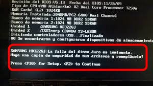 Tenía un PC portátil HP Pavilion por 3 años ejecutando Windows 7. Encendí mi equipo esta mañana y recibí una advertencia diciendo :"La falla de disco duro es inminente, haga una copia de seguridad de sus archivos y reemplácelo. Pulsa F10 para configurar,F2 para continuar. ¿Cómo recuperar este error?