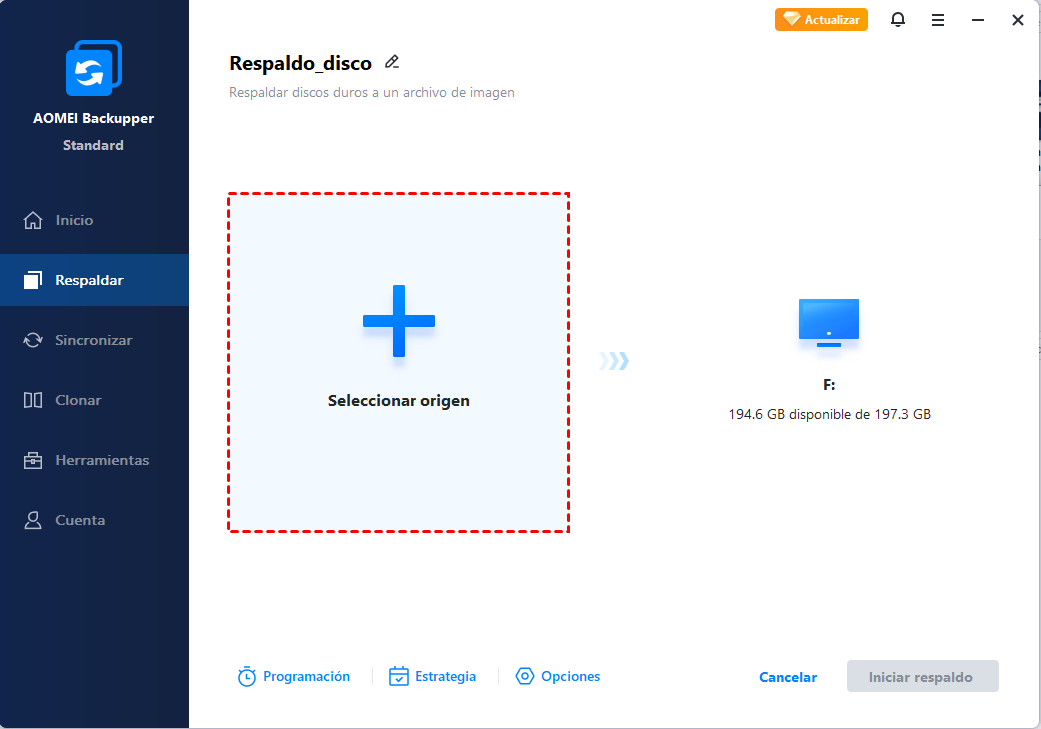 AOMEI Backupper Standard, un software de copia de seguridad completo y gratuito, que te admite hacer copia de seguridad a unidades de disco externas, unidades de red, NAS, USB. Con AOMEI Backupper, puedes restaurar el sistema a la unidad de disco duro que está corrupto por el bloqueo del sistema, la falla de disco duro o desastre natural, hasta en el caso de que no puedas arrancar el sistema de Windows. El guía siguiente te introducirá el proceso de copia de seguridad de disco duro con la falla inminente de forma paso a paso.