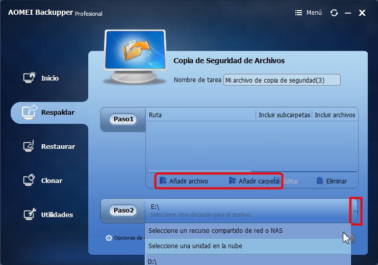 AOMEI Backupper es un excelente software de copia de seguridad para Windows, el cual te admite hacer copia de seguridad de datos en el equipo a NAS como Synology, dispositivo de almacenamiento de nube como Dropbox, Google Drive, unidad de disco duro externa, etc.