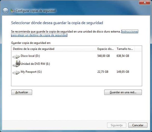 >>Realizar copia de seguridad de datos en Windows 7 usando Copias de seguridad y Restauración