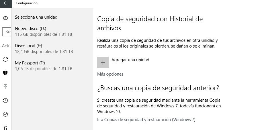 >>Hacer copia de seguridad de datos en Windows 10/8 usando Historia de Archivos