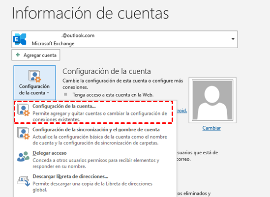 1. Haga clic en Archivo > Información y seleccione Configuración de la cuenta dos veces.