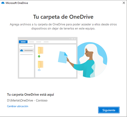 Paso 2. En la página de tu carpeta de OneDrive, selecciona "Siguiente" para aceptar la ubicación predeterminada de la carpeta para tus archivos de OneDrive.
