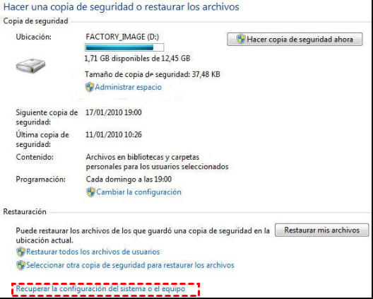 Paso 2. Haz clic en Recuperar la configuración del sistema o del equipo en la pestaña de recuperación.