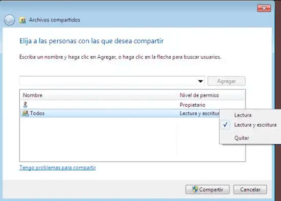 3. Haga clic en la pestaña "Compartir" y seleccione Compartir... para crear una carpeta compartida. Debe agregar los usuarios con los que desea compartir y establecer el permiso de lectura/escritura.