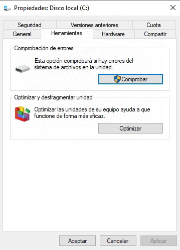 Y se sugiere comprobar tanto la unidad C como la unidad D navegando a sus Propiedades y seleccionando Comprobar en la pestaña Herramientas.