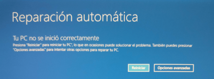 Utiliza un disco de instalación de Windows para acceder a las opciones de recuperación y realizar una reparación de inicio.