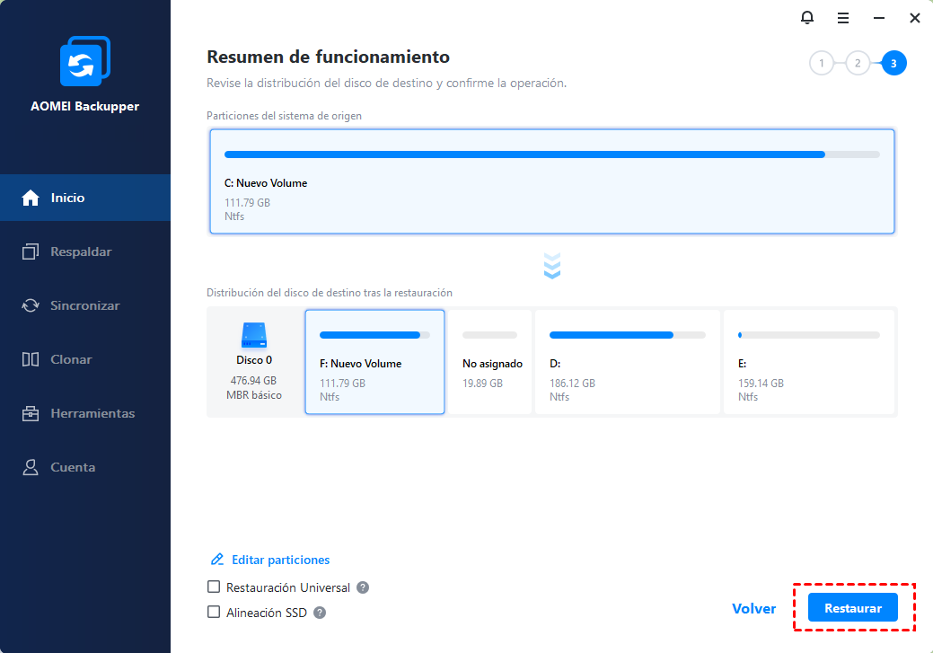 ▶ Restaurar la imagen del sistema en la nueva unidad SSD